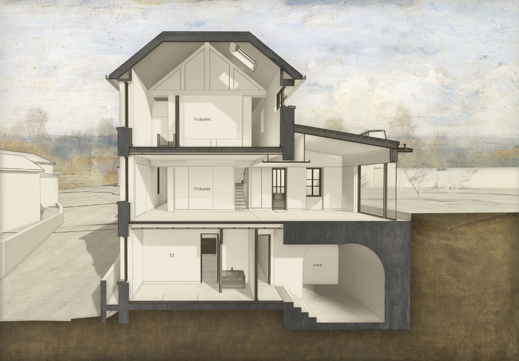 Triel-sur-Seine, 4 logements Restructuration lourde d’un immeuble de 4 logements collectifs Esquisse, Avant-projet, DCE, 2021-2022 ***
